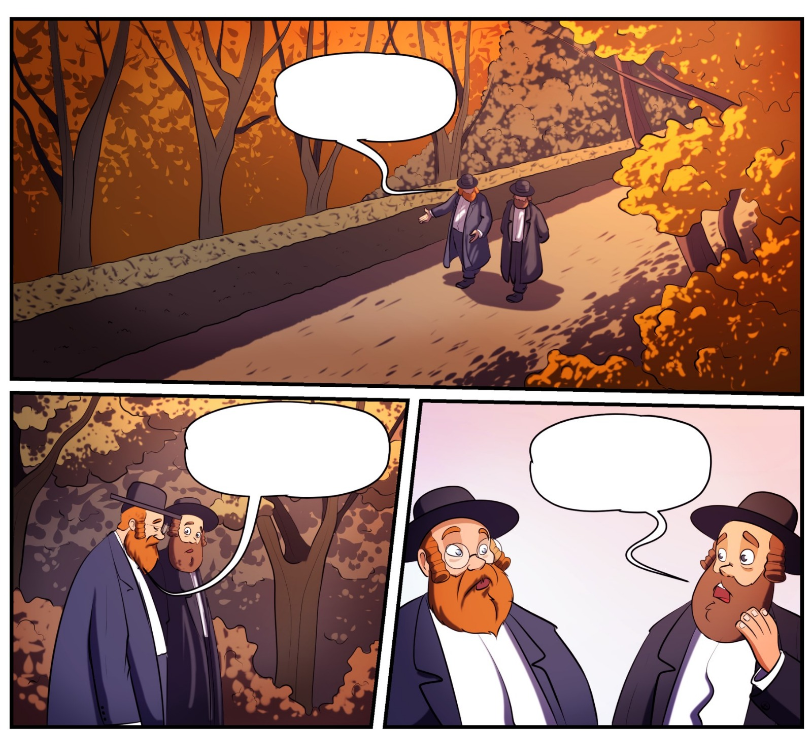 סצנה שמתרחשת באותו מקום למשך 10 עמודים היא אתגר ויזואלי גדול, ולכן שינוי גוון השמים היה רעיון הכרחי (אפשר לראות בעיגולים מעל כל עמוד את גוון השמים המרכזי בעמוד, כך נוצרת הדרגה ריאליסטית ומתאימה להתרחשויות)