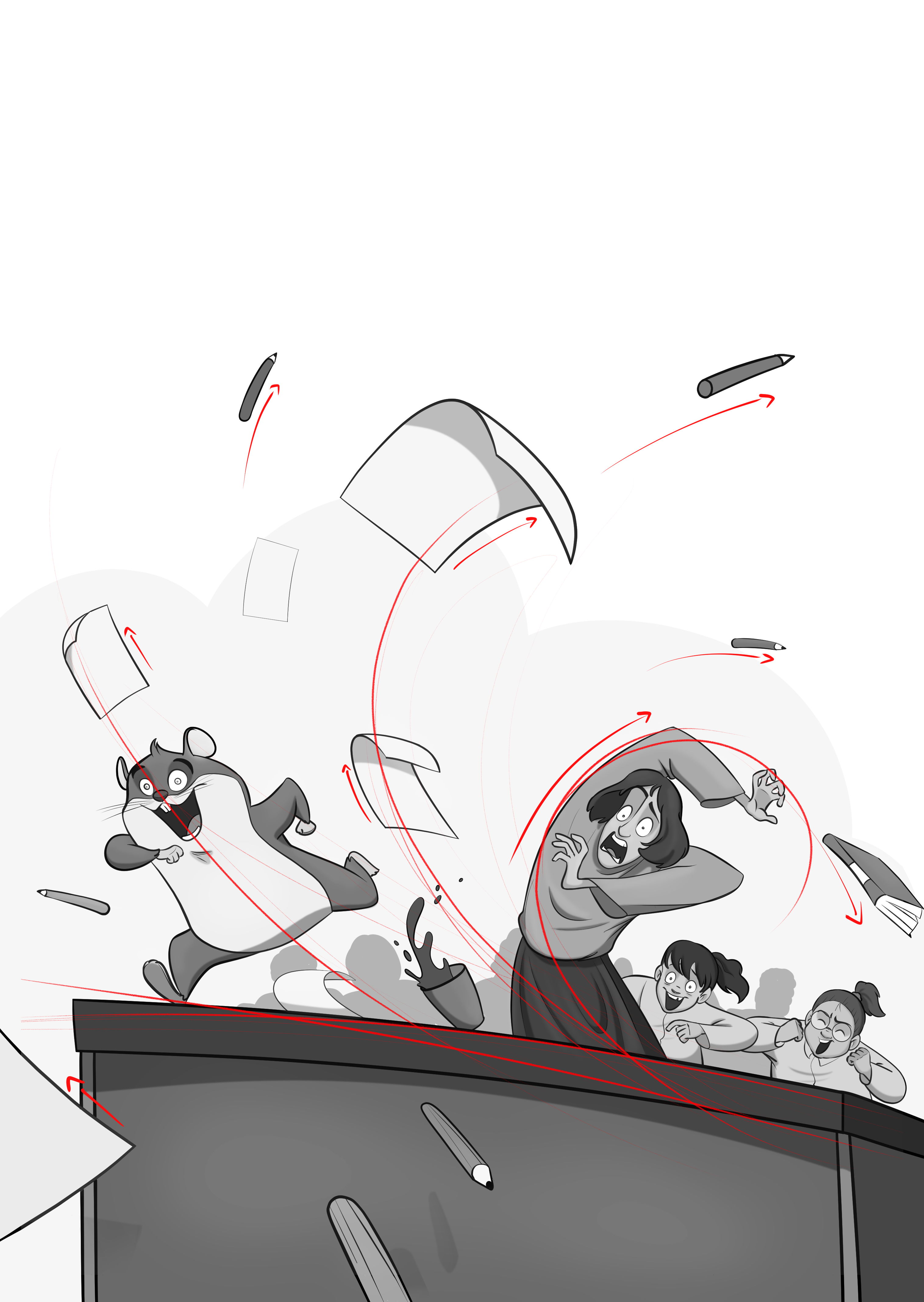 פרט חשוב נוסף- הקומפוזיציה צריכה להיות מאוחדת ולא אחידה. כל נייר, עיפרון וספר בציור הזה עף בזווית מעט שונה, אך כולם מאוחדים באותה תנועה הרמונית. כך שיש לנו שוני שיוצר עניין, ואחדות ששומרת על אלגנטיות ולא נותנת לציור להתבלגן. העין מובלת בצורה נעימה לאורך הציור.